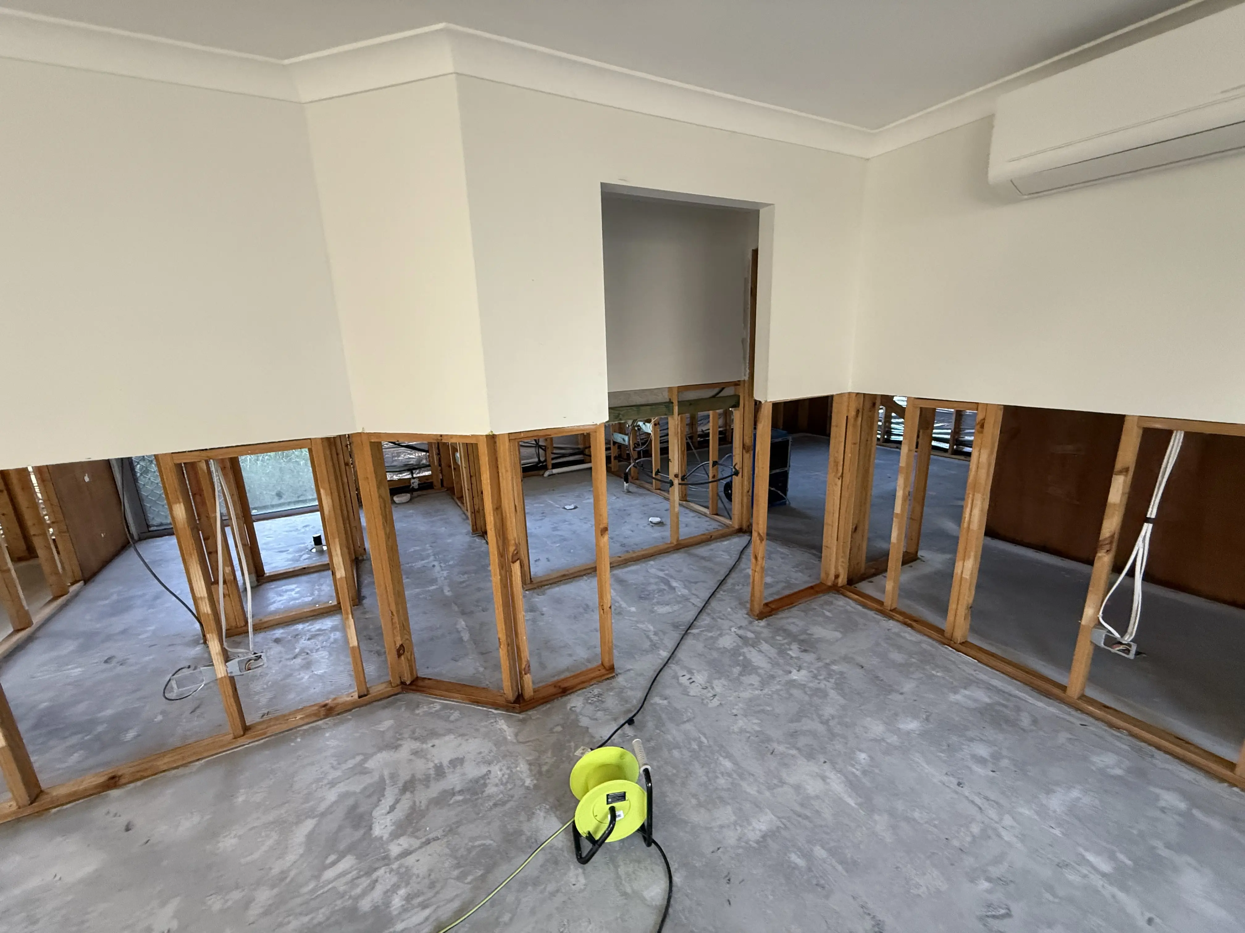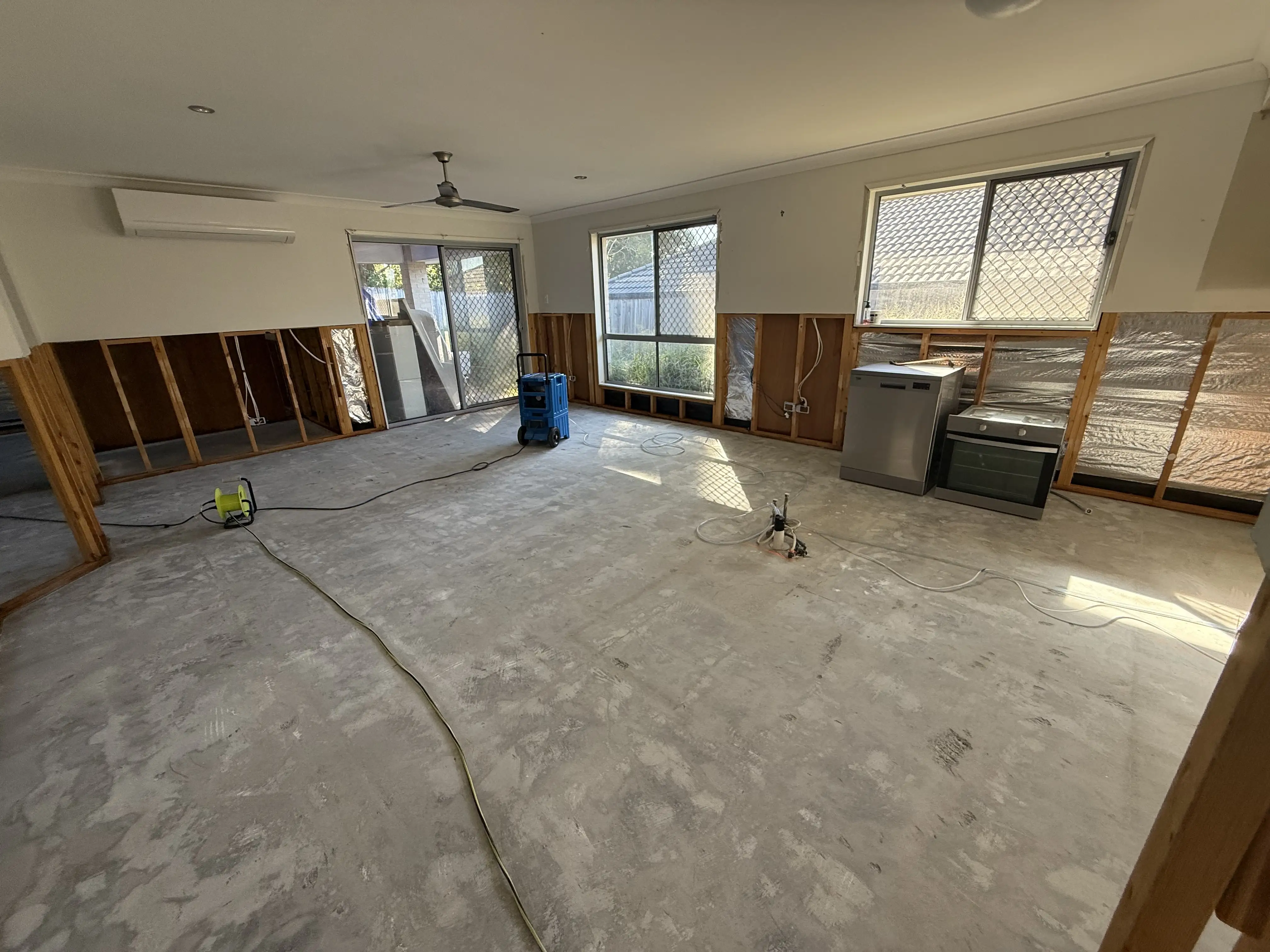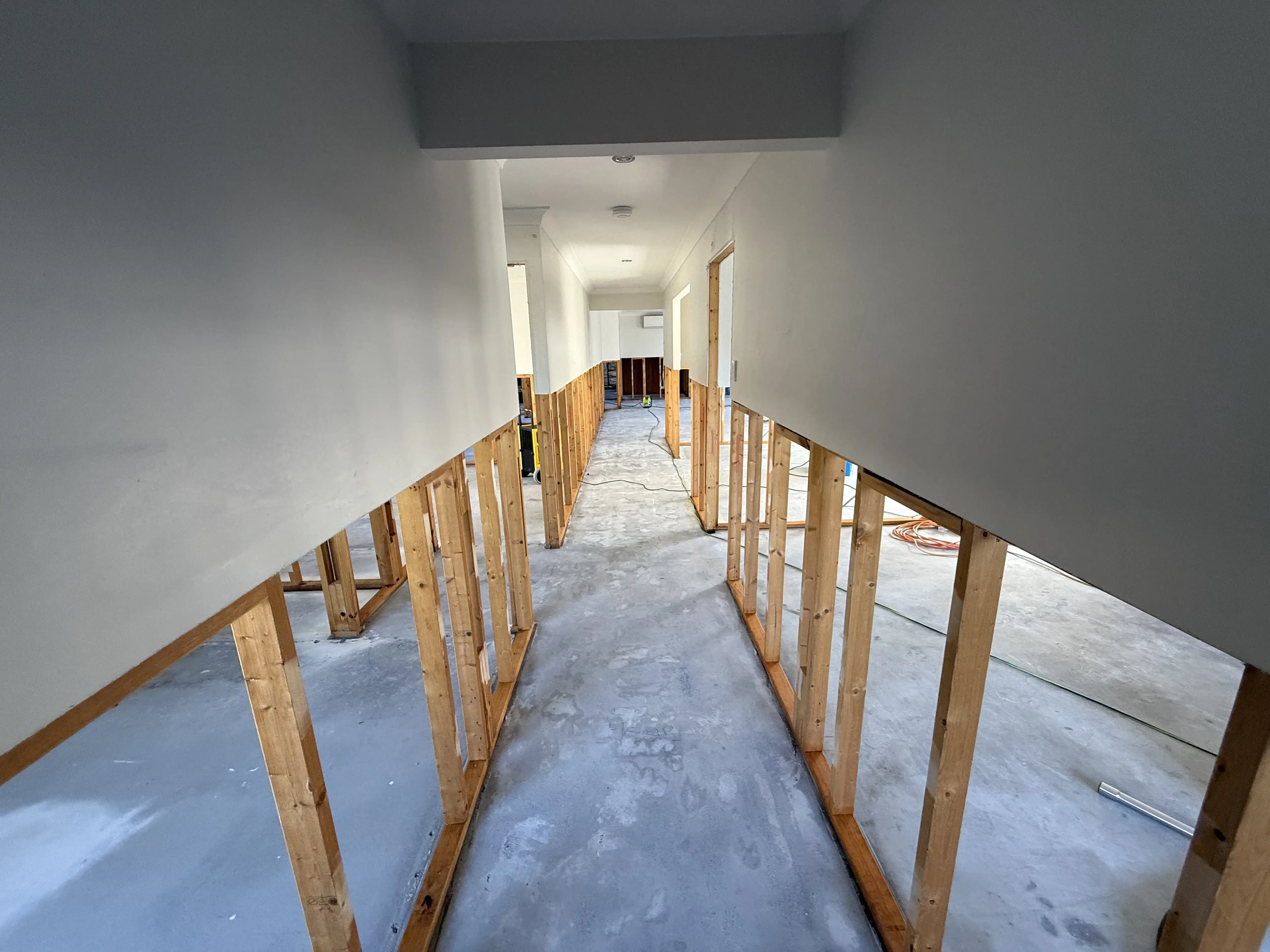 All exposed surfaces, including timber framing and slab edges, were thoroughly cleaned and treated with a hospital-grade disinfectant rated for biohazard environments.